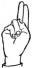 На ћирилици написано КАЋА ЋАТИЋ састоји се из 9 слова [?]. Исписано ћириличном једноручном азбуком за глувонеме: